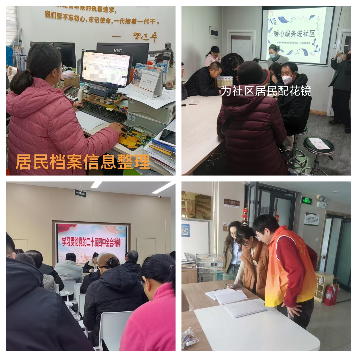 興業(yè)社區(qū)公益崗人員正在進(jìn)行居民檔案信息整理,西澇臺社區(qū)協(xié)助社區(qū)居民配花鏡,青州街社區(qū)組織黨員學(xué)習(xí),東澇臺社區(qū)協(xié)助網(wǎng)格員進(jìn)行入戶登記居民信息。通過此次檢查,以上社區(qū)公益崗人員簽到規(guī)范、無遲到早退,積極配合社區(qū)工作人員,充分發(fā)揮公益崗人員在基層管理和公共服務(wù)中的重要作用。
